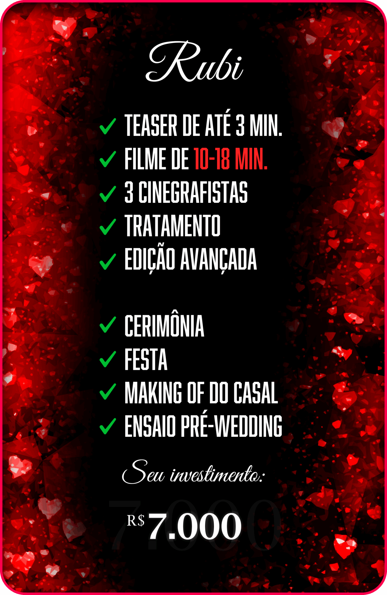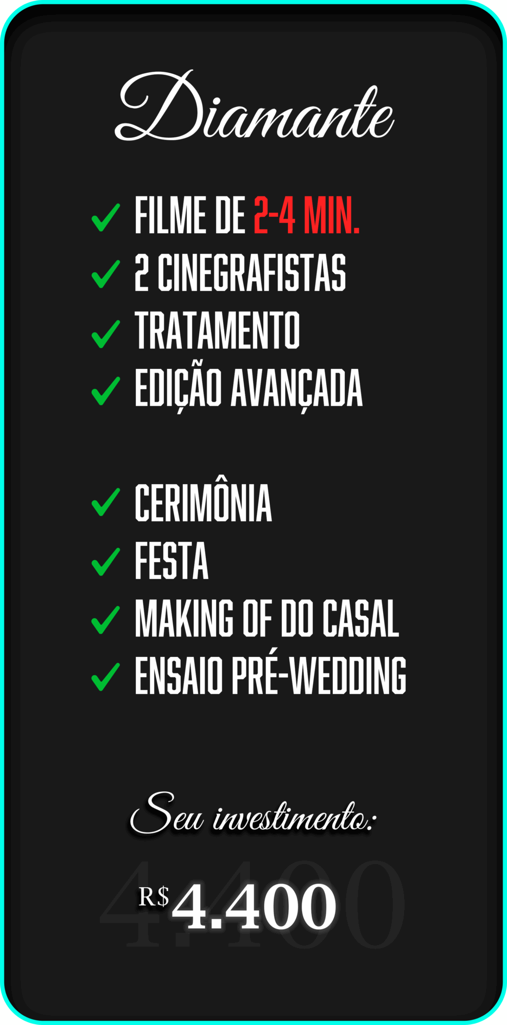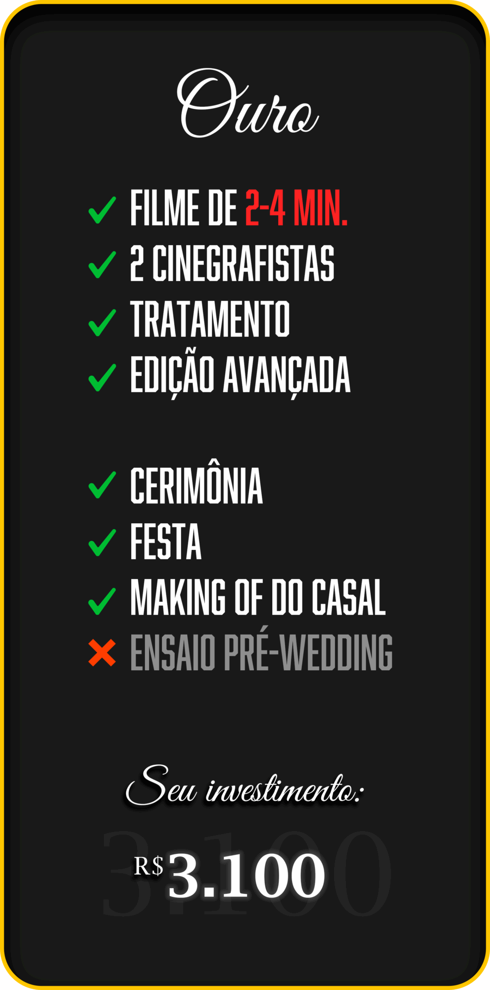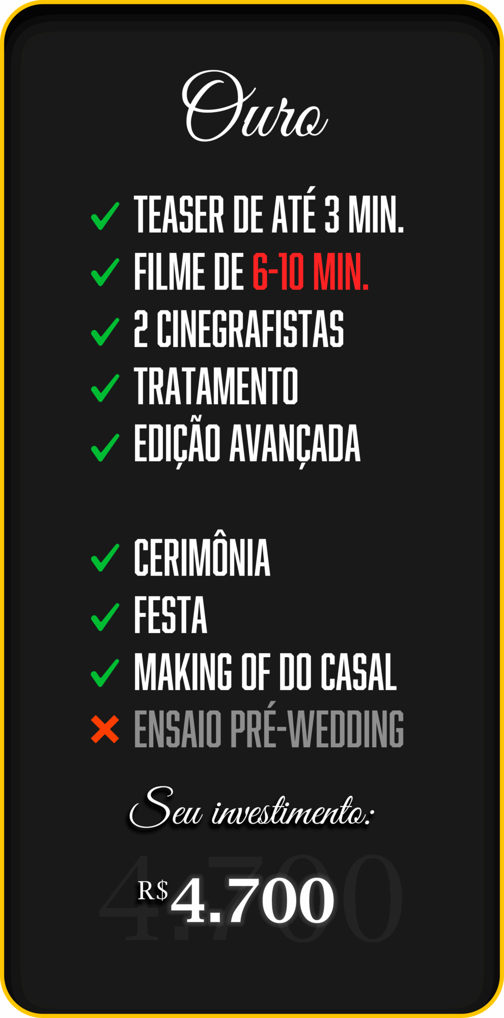 Nosso objetivo é capturar a essência daquele dia especial e eternizar as emoções vividas, criando um filme que você vai querer assistir e reviver sempre.
